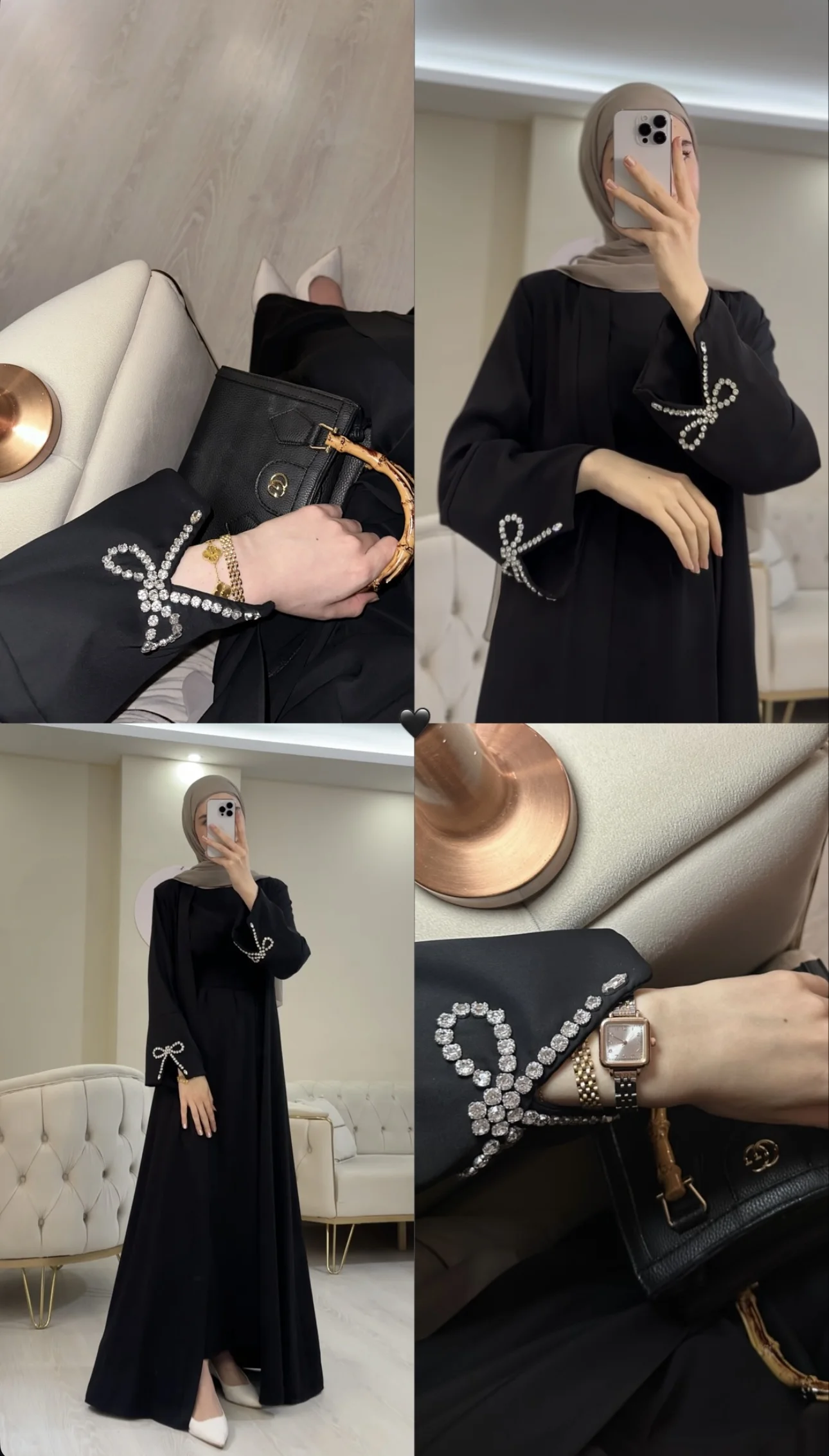 ABAYA "DIAMAND" 3 PIECES abaya robe d'intérieure et ceinture